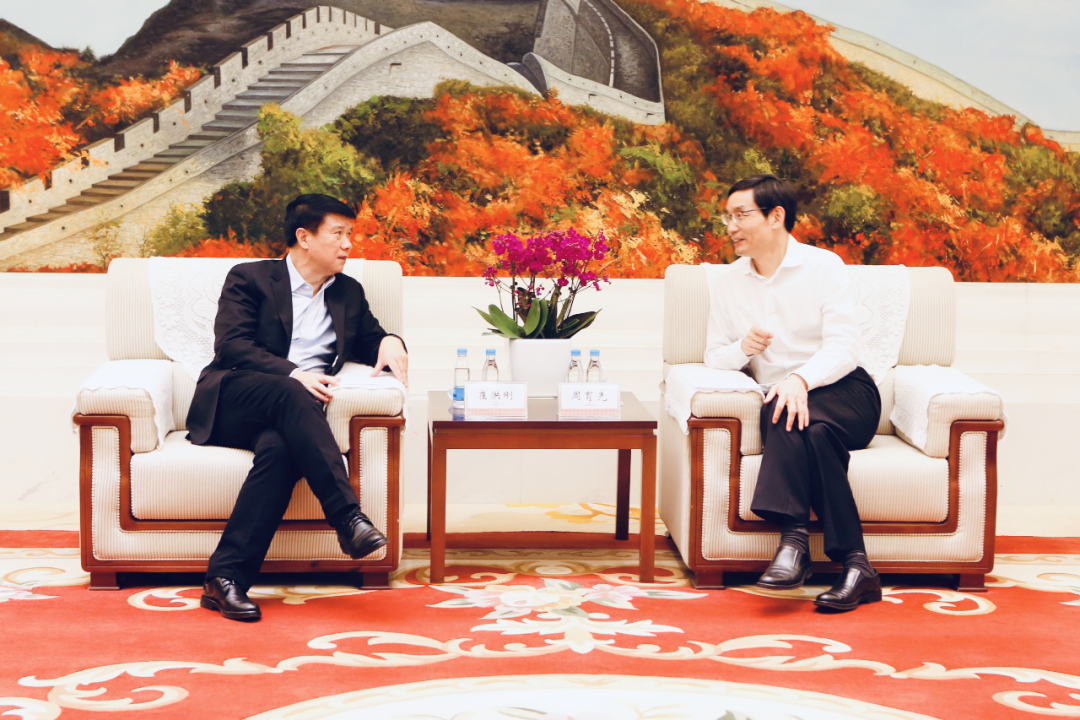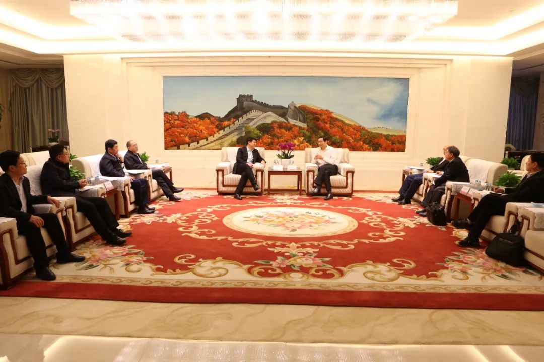 10月20日, 党委书记、董事长周育先在集团总部会见了泰安市委书记崔洪刚一行。双方就加强央地合作、共同推进新材料产业发展等进行了探讨和交流。集团党委常委、副总经理常张利,泰安市委常委、秘书长李灿玉出席会见座谈。
