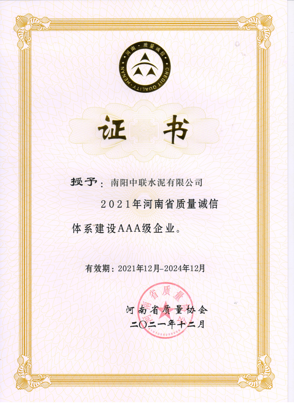 三是确保产品质量,铸就卓越品牌。南阳中联依靠完备的质量保证体系与控制手段,生产的“CUCC”中联牌水泥以其卓越的质量品质,成为全国政府采购优选产品、河南省免检产品、重点保护产品和消费者信得过产品,连续四届被评为河南省著名商标,广泛应用于国防、交通、工农业、水利及城市建设等质量要求较高的工程。尤其是近年来,公司研制开发的低碱优质42.5级、52.5级水泥,被南阳机场、二广高速、沪陕高速、南水北调、宁西铁路、郑万高铁、蒙华铁路等诸多重点工程项目选用。