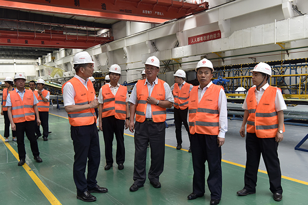 7月18日,国务院国资委副主任、党委委员孟建民到 所属中复神鹰和中复连众调研指导。受集团董事长、党委书记宋志平委托,集团总经理兼中国建材股份董事长、党委书记曹江林陪同调研。