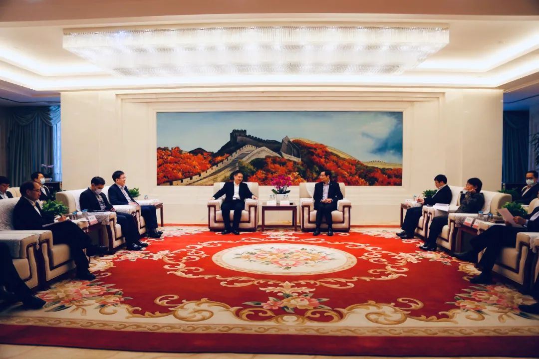 11月20日, 党委书记、董事长周育先在集团总部会见了华电集团党组书记、董事长温枢刚一行。 党委常委、副总经理王于猛,华电集团党组成员、副总经理、总会计师邵国勇出席了会见。