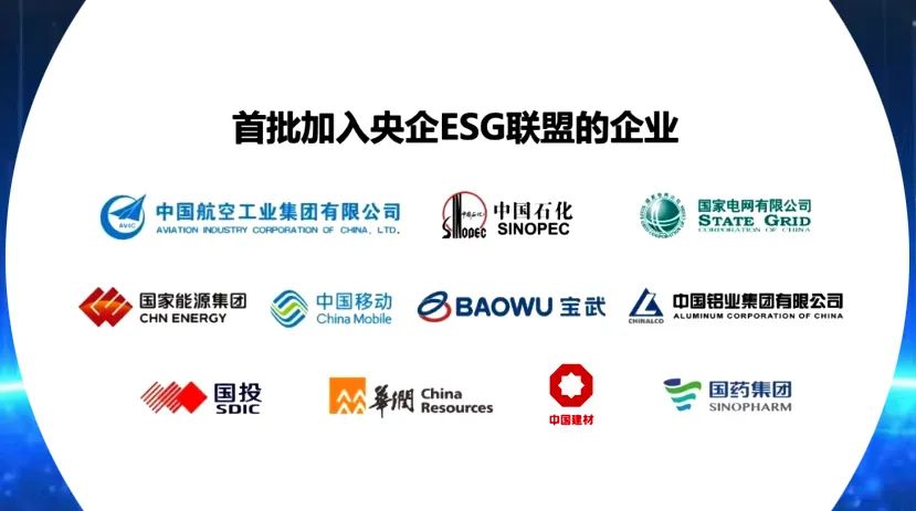 “中央企业ESG联盟”是由国务院国资委社会责任局指导,中国企业改革与发展研究会、中国社会科学院经济研究所、中国社会责任百人论坛牵头发起成立,多家中央企业担任理事长单位的央企ESG研究交流平台,旨在联合各方助力中央企业ESG建设。该联盟首批成员企业包括中航工业、中国石化、 等11家央企。