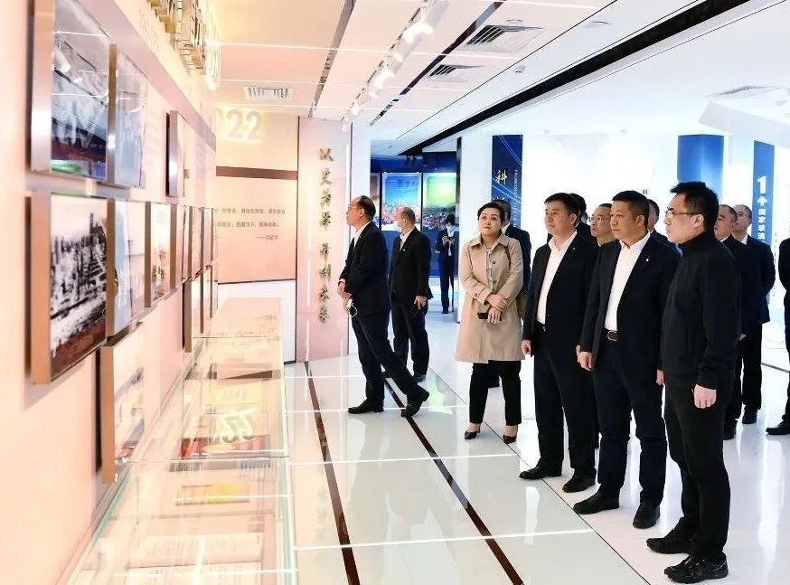 座谈会前,蔡国斌陪同于会文一行参观了集团展厅。