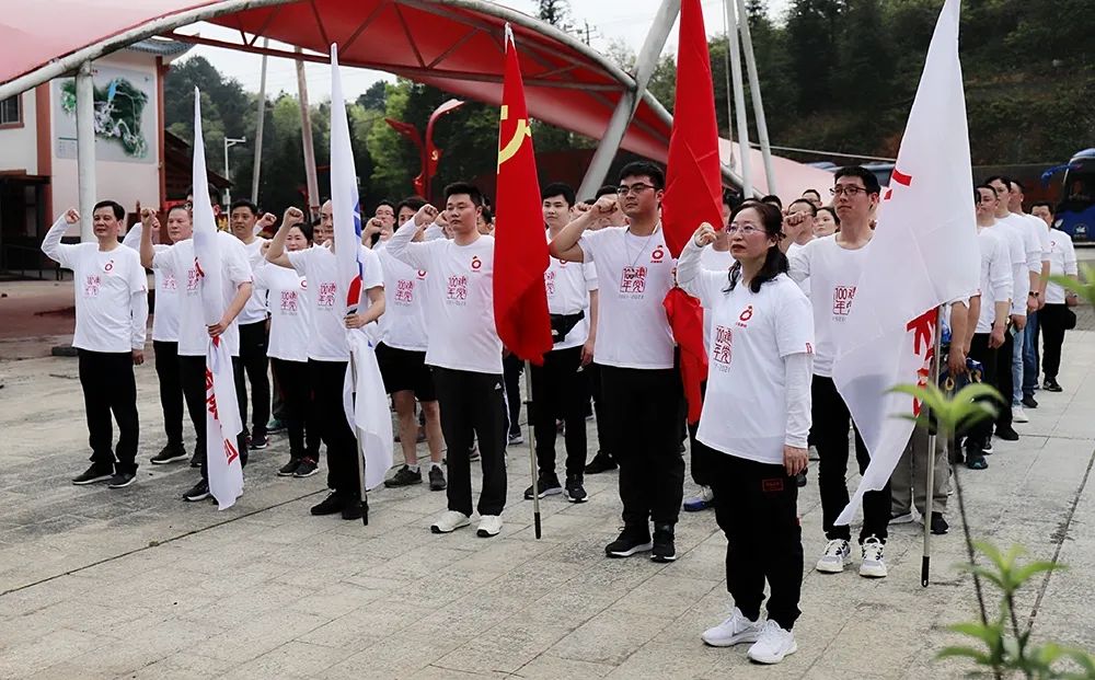 冲刺到达三湾改编旧址外的广场后,全体健跑队员在鲜红的党旗下,高举右手庄重宣誓,重温入党誓词,引导大家回顾党的百年光辉历史,继承和发扬党的光荣传统和优良作风,进一步增强党组织的凝聚力和战斗力,激励广大党员坚定理想信念,传承革命先烈们冲锋陷阵、不怕牺牲的精神,突破和超越当下的自己,奋发向上、拼搏进取,做深做细做实各项工作,为建设更好的明天同创共进!