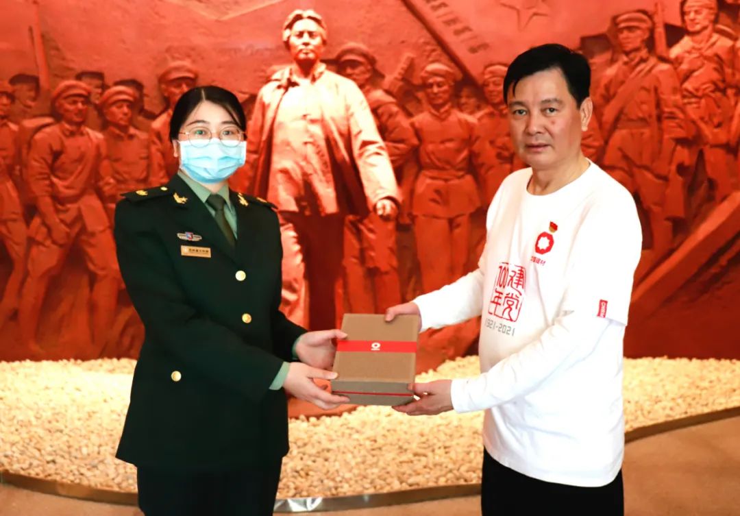 讲解员为大家细致地讲述了“三湾改编”的背景、过程、意义,在讲解员的生动描述下,仿佛又看到先辈们满怀革命豪情坚定的身影,不惧艰难险阻,毅然决然投身革命。参观过后,时修权向三湾改编旧址纪念馆赠送了 庆祝建党一百周年新材料纪念印章。