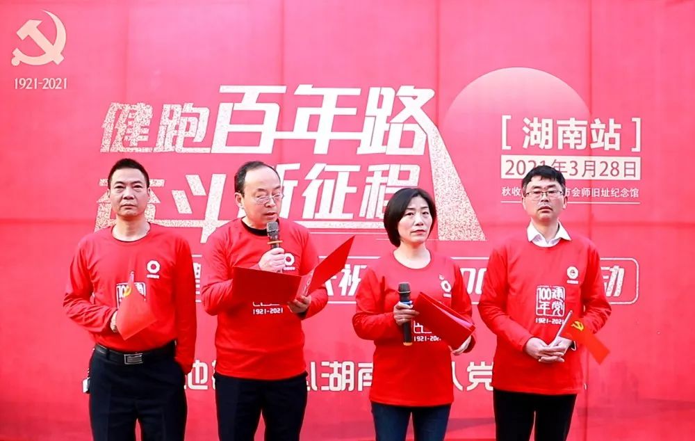 3月28日, “健跑百年路 奋斗新征程”第九站在秋收起义会师旧址湖南省浏阳市文家市镇顺利举行。集团所属中国建材地质勘查中心湖南总队党委书记段伟,党委副书记、纪委书记龙咏霞,以及总队党员、入党积极分子共71人参加活动。