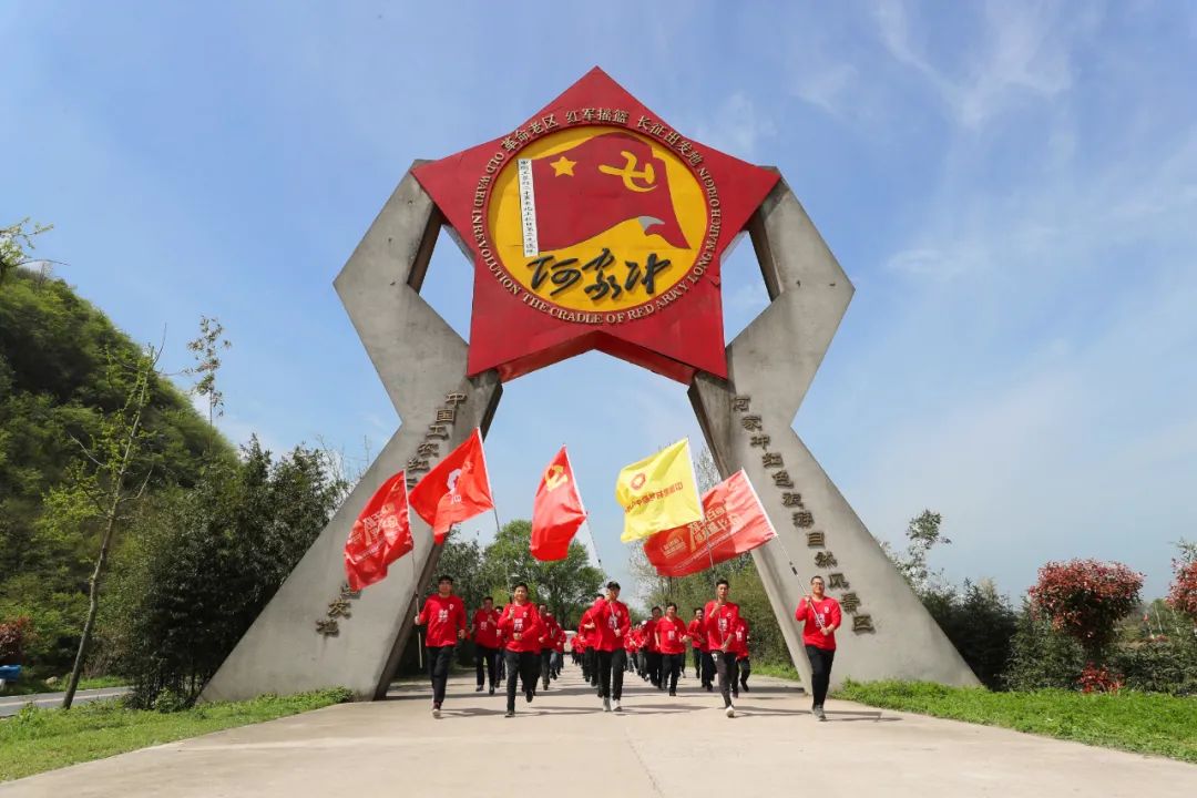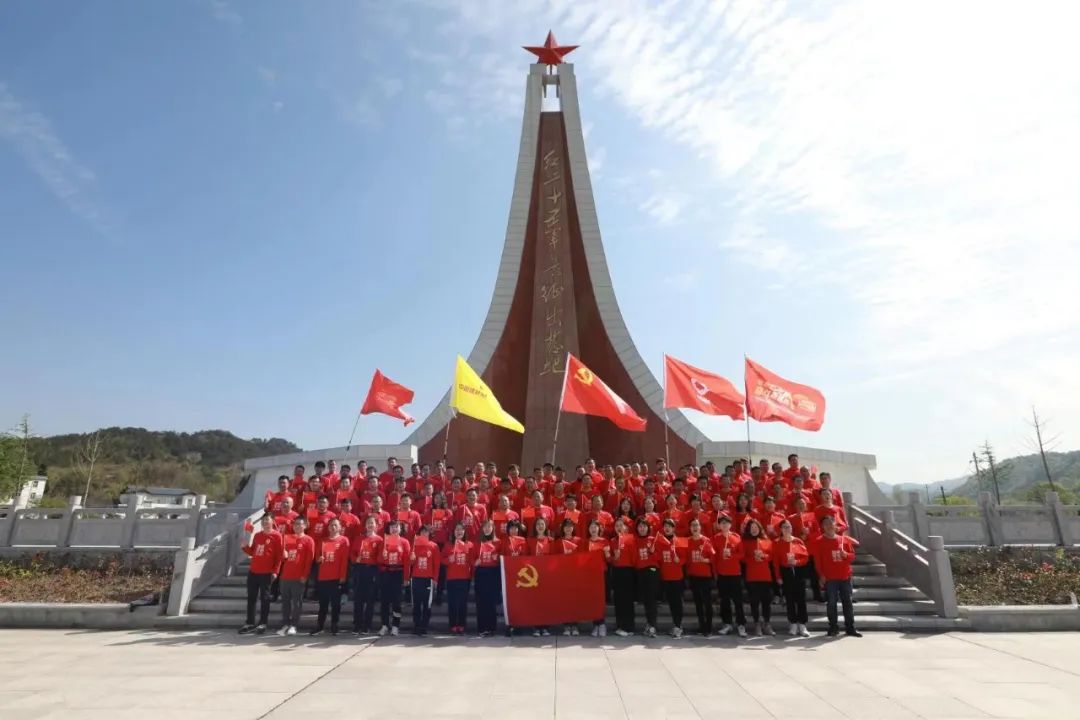 本次活动分为重走长征路2.5公里,寓意红军二万五千里长征;全程7.1公里,寓意“七一”党的生日。队伍沿着先辈的足迹,穿过曲折回转的青石板,攀越陡峭崎岖的山路,跨过悬吊于两山之间的英雄桥,登上神圣的红军纪坛,驻足于象征着红二十五军出征地的银杏树下,清澈纯净的红军井水,净化了我们的心灵。