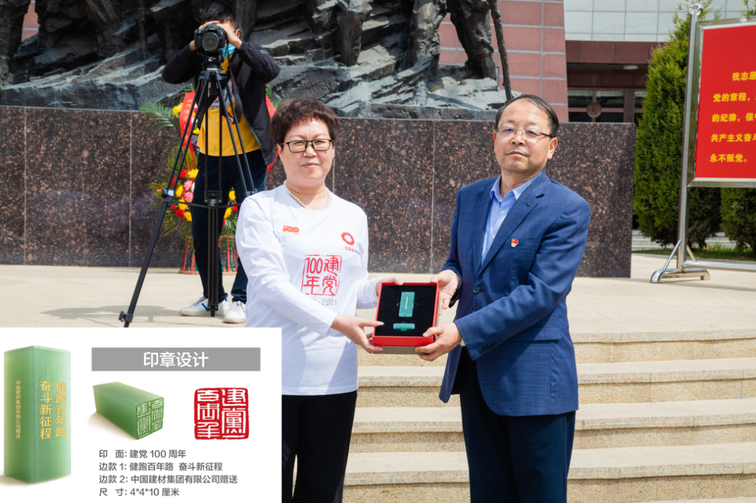 参观现场,地勘中心青海总队党委书记张景伟向西路军纪念馆馆长孙孟桥赠送了 庆祝建党100周年的新材料纪念印章。
