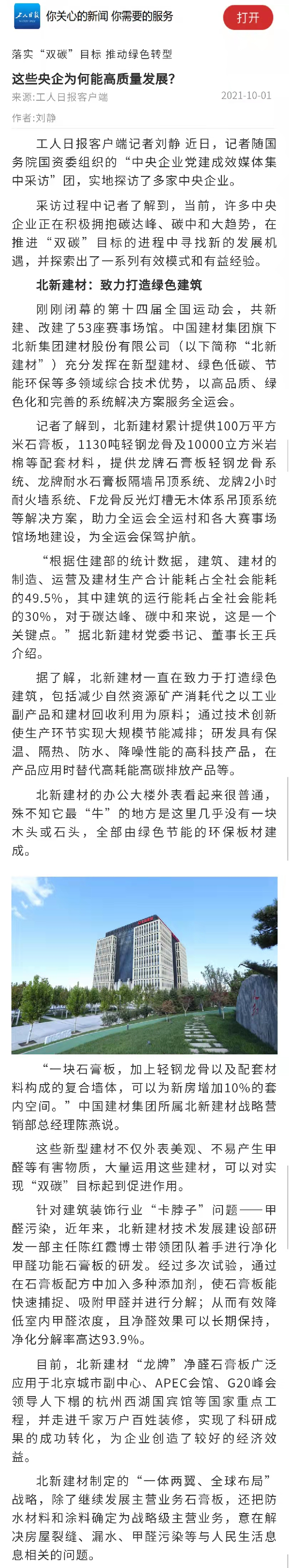 媒体走进中建材 | 高质量党建引领高质量发展典型宣传国资委组织媒体走进北新建材