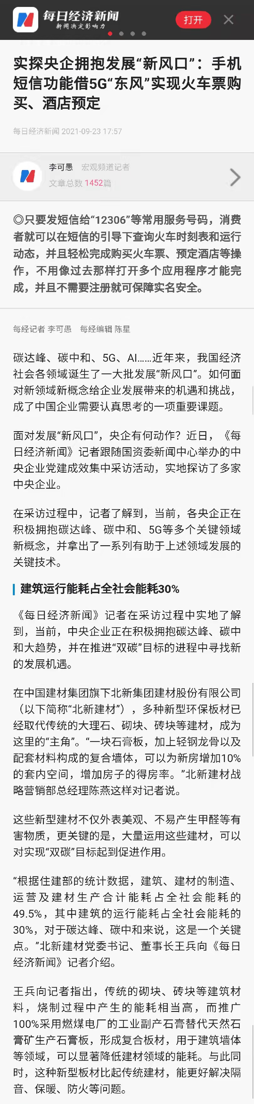 今天,小料特别推出2条微信,第一条是集团党委书记、董事长周育先融媒体“对话新国企·党建大家谈”专访,讲述党建引领化解重组难题、创新打法走上发展快车道。第二条就带大家走进北新建材的集中访谈了解情况。此次采访北新建材媒体包括中央电视台、《光明日报》《工人日报》《人民政协报》、中国新闻社、《中国证券报》《中国企业报》《每日经济新闻》《中国经济时报》、人民网、《国资报告》等11家,参观了未来建设馆、鲁班HOUSE、党史学习教育数字化教学基地、院士工作站、企业文化园等,并对北新建材以高质量党建引领企业高质量发展取得的成效进行深度报道。