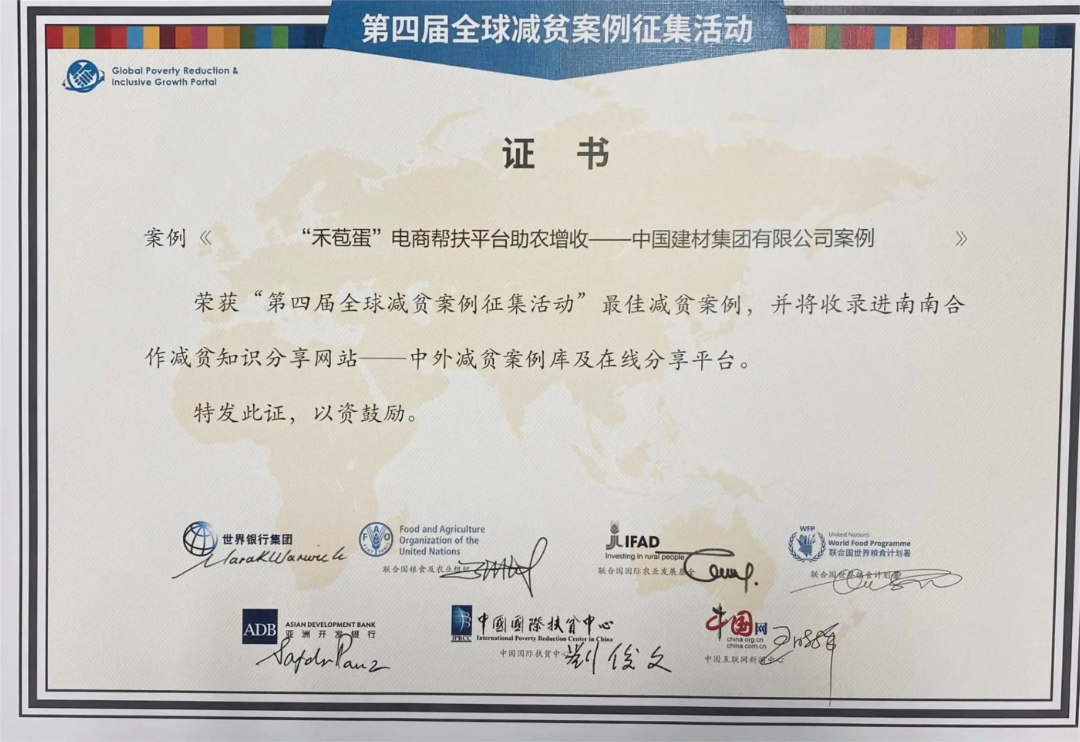 近日,第四届“全球减贫案例征集活动”获奖名单揭晓,集团乡村振兴工作案例《“禾苞蛋”电商帮扶平台助农增收—— 案例》荣获最佳减贫案例,并被收录进南南合作减贫知识分享网站——中外减贫案例库及在线分享平台。这一荣誉彰显了集团在全球减贫和乡村振兴中的卓越贡献及影响。该活动由中国国际扶贫中心、世界银行、联合国粮农组织等7家机构联合发起,旨在全球范围内分享和传播中国以及国际成功的减贫模式及创新实践。