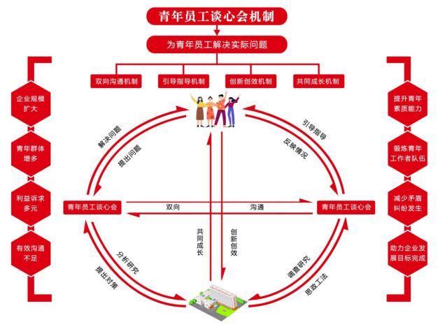 来源:集团团委、中研院 发布时间:2025-05-21习近平总书记在党的二十大报告中明确要求“全党要把青年工作作为战略性工作来抓,用党的科学理论武装青年,用党的初心使命感召青年,做青年朋友的知心人、青年工作的热心人、青年群众的引路人”。在 团委的带领下,中研院团委打造了青年员工谈心会机制,努力做好青年的知心人、热心人、引路人,引导青年创新创效为企业做贡献,该机制也成为凝聚人心、稳定团队、激活关怀员工、吸引人才的留才“秘诀”。