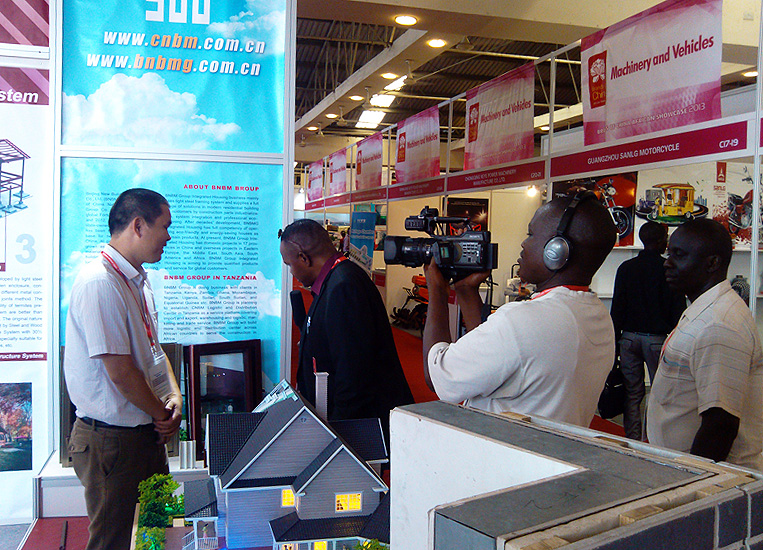 北新集团展位通过样品、模型等实物展示,结合视频及资料宣传,配合公司英文网站线上推广,全方位地向坦桑当地及非洲各国采购商展示了中国建材坦桑尼亚分拨中心规划布局情况并重点推介了节能、环保、低碳的北新新型房屋产品及相关部品。