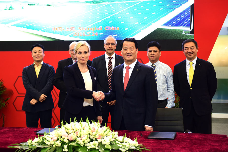 5月24日,凯盛科技在上海2016国际太阳能产业及光伏工程展览会现场举行光伏项目集中签约仪式暨凯盛绿色能源及房屋发展基金启动仪式。 总经理助理、国际合作部总经理卫锋,凯盛科技总经理、中国建材工程董事长彭寿与各合作单位领导共同出席活动。