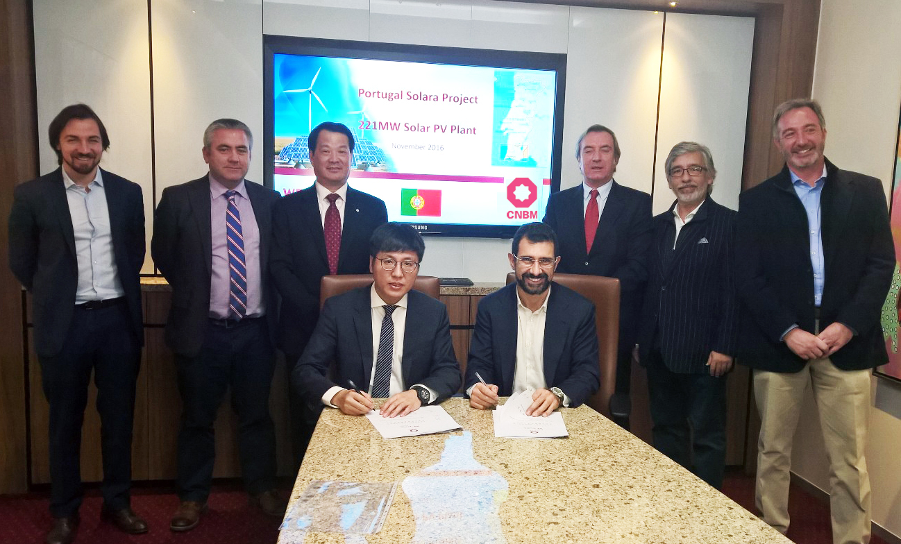 来源:国际合作部发布时间:2016-11-2311月22日,中国建材所属中国建材工程在英国签订葡萄牙Solara4 Vaqueiros 221兆瓦大型光伏地面电站EPC总包合同,合同总金额达2亿欧元;同时还签署了在英国开发建设加能源绿色房屋小镇的战略合作协议。