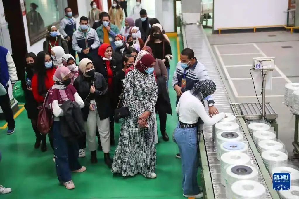 Egyptian students visit China's fiberglass giant manufacturer Jushi in Suez Province, Egypt, on Dec. 30, 2021. (Xinhua/Sui Xiankai)