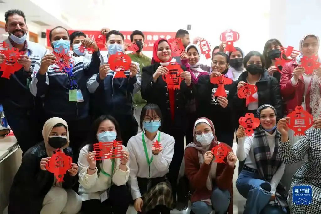 Egyptian students experience traditional Chinese paper cutting at China's fiberglass giant manufacturer Jushi in Egypt, on Dec. 30, 2021. (Xinhua/Wang Dongzhen)