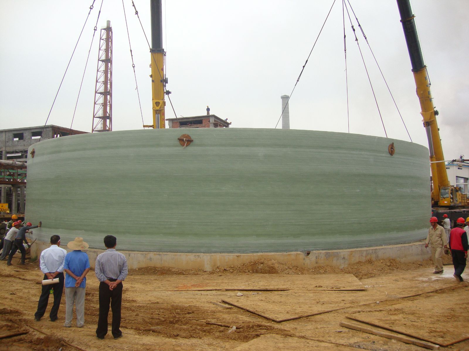中复连众制作的全球容积***的5000立方玻璃钢盐酸储罐竣工