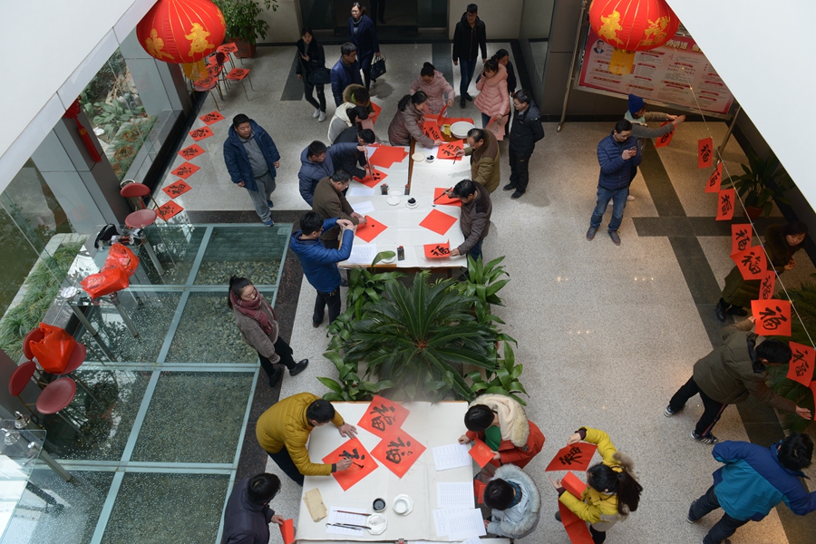 来源:蚌埠院发布时间:2017-01-251月24日,蚌埠院举办 “我们的节日——春节 写春联送祝福”活动。来自蚌埠院书画协会的离退休职工和凯盛重工的安徽省书法家协会会员共同挥毫拨墨、展示技艺,为蚌埠院职工送上新年祝福。