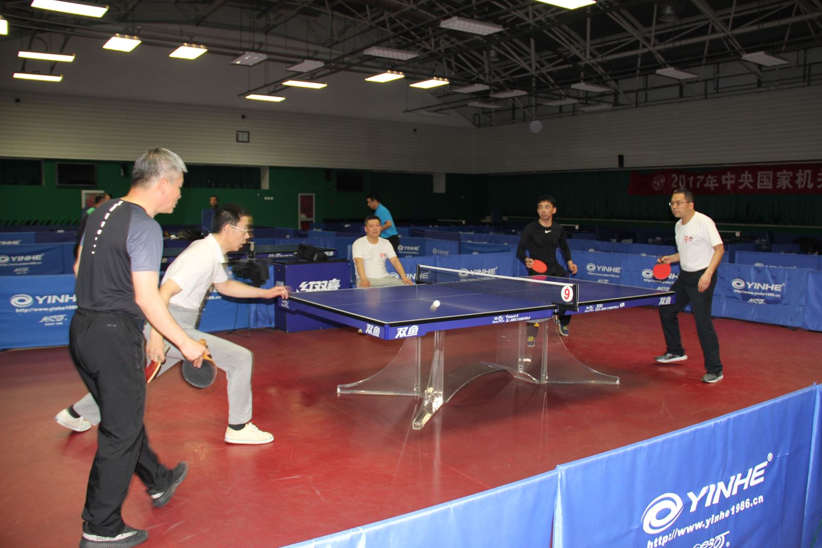 在乒乓球赛场,比赛跌宕起伏,前三场单打比赛,中青班以2:1暂时领先。第四场双打比赛,实力相当,比分交错上升,战满五局,轮训班以3:2获胜,双方大比分2:2平。决胜第五场单打,轮训班学员顾超技高一筹,成功逆转。最终轮训班以3:2战胜中青班。