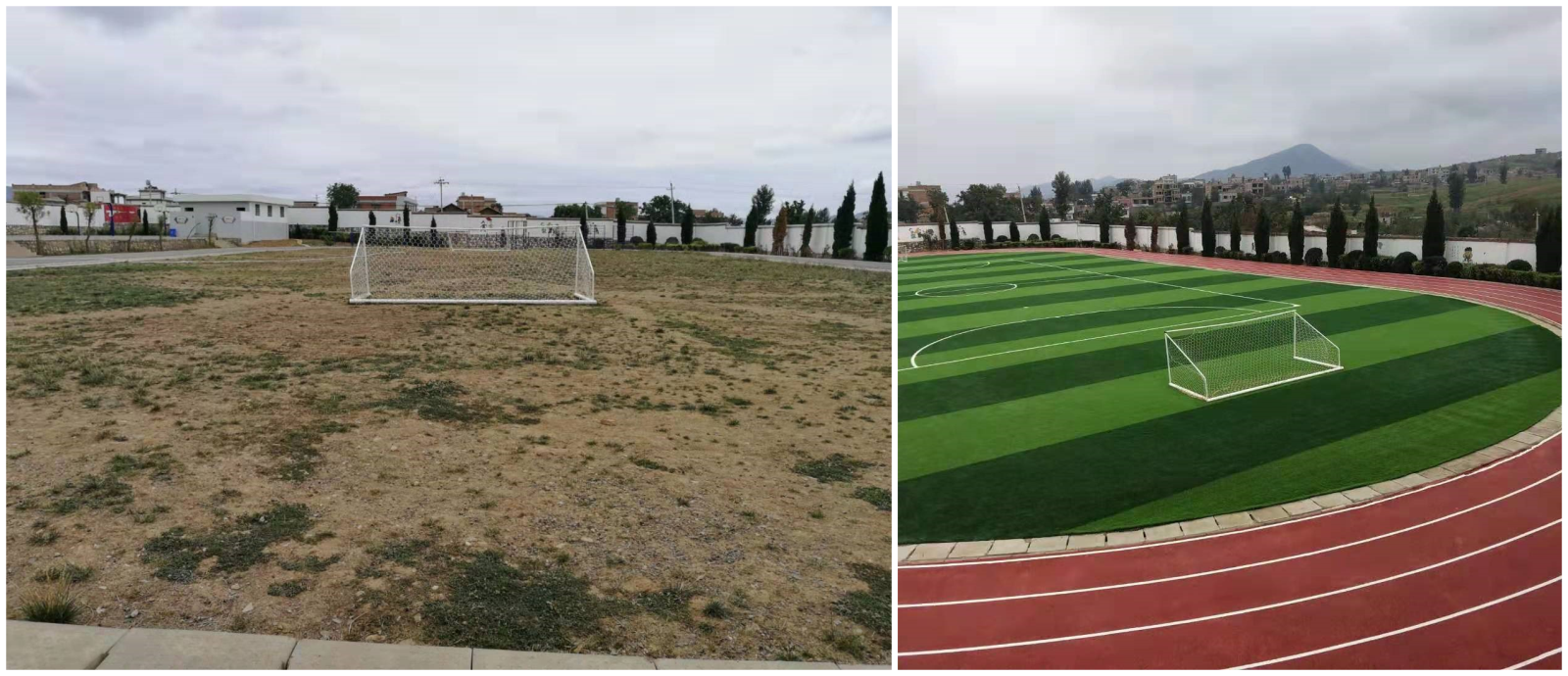 运动场施工前后