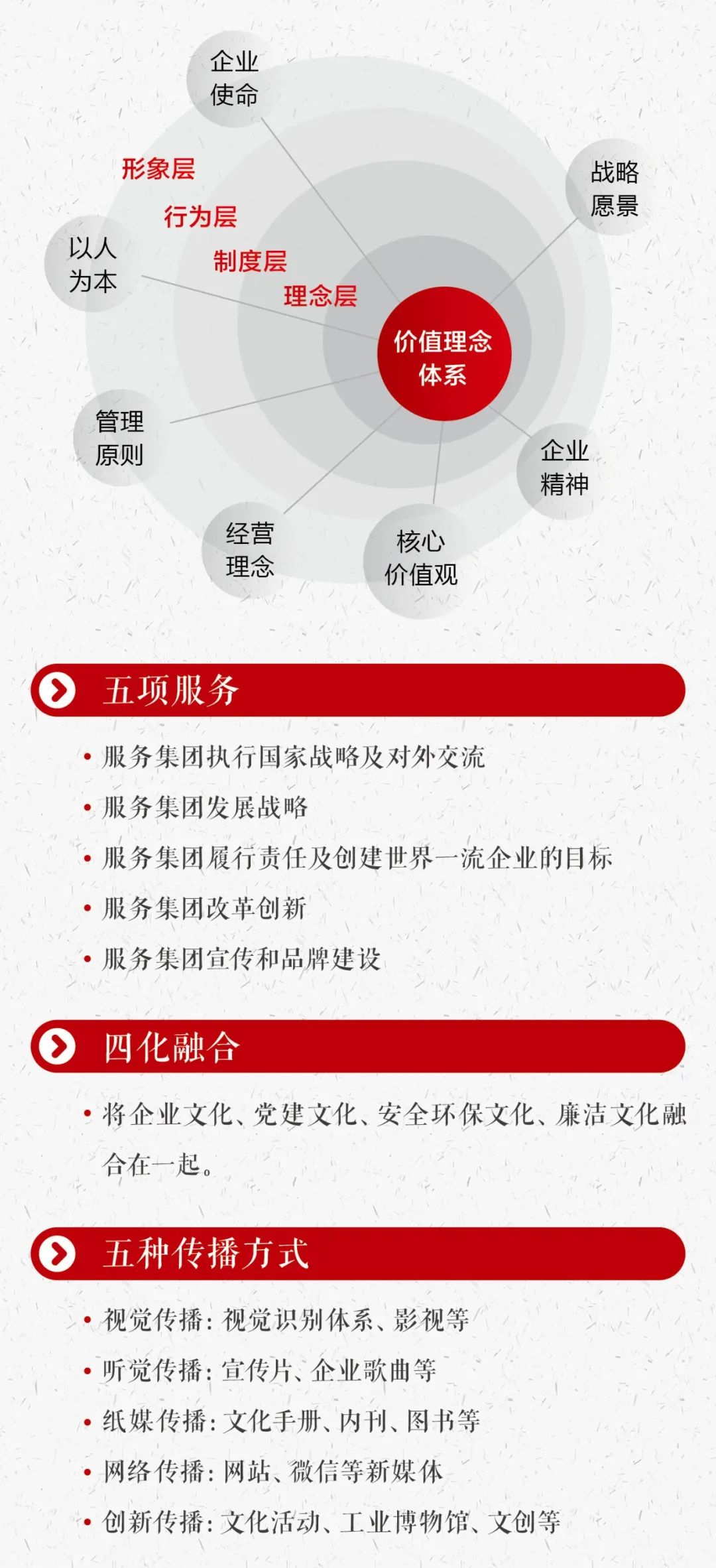 深厚的文化底蕴以及高度的国企责任,铸就了 独具特色的文化体系。我们分阶段系统开展企业文化提升暨文化手册编制工作,第一阶段完成了全级次摸底调查(点击蓝字可查看),第二阶段汇聚全体员工的集体智慧,梳理升级文化体系,编印《企业文化手册》。