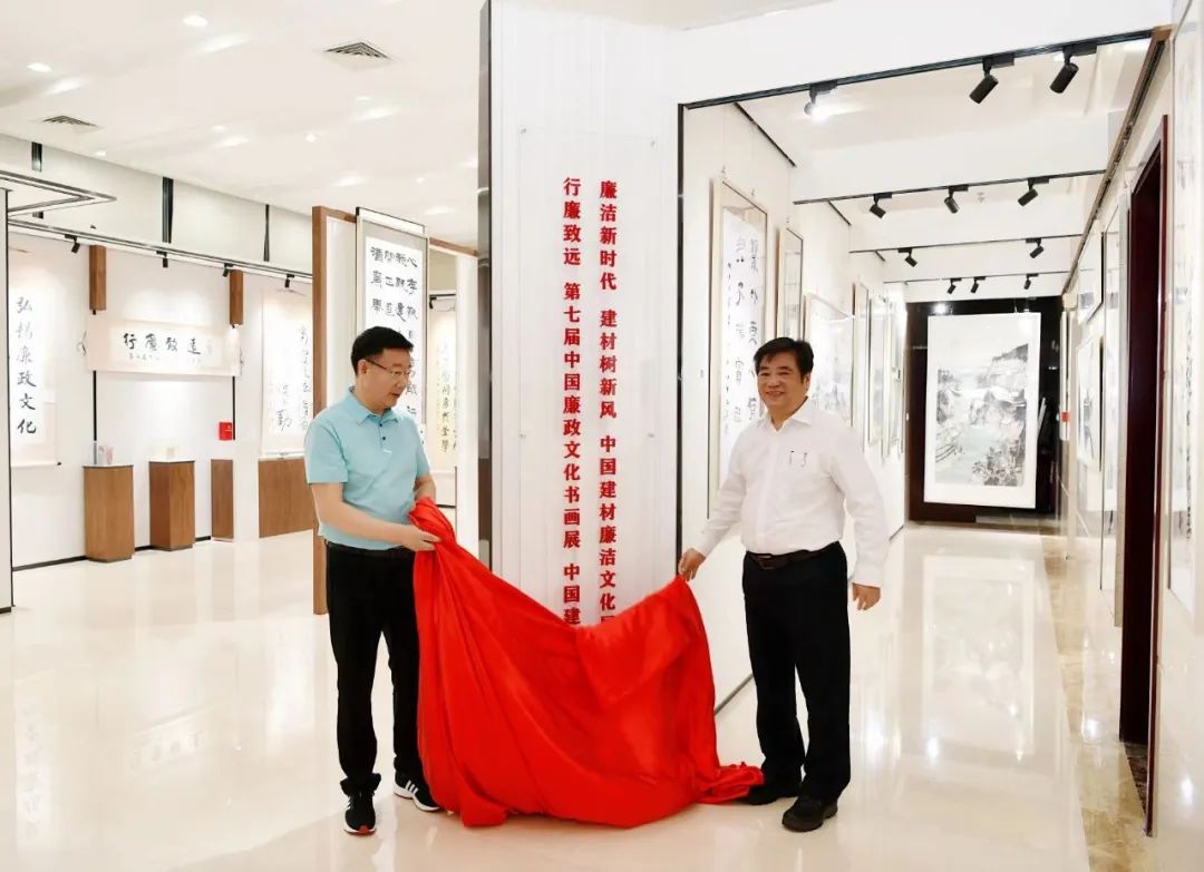 为全面贯彻落实党的十九大、十九届六中全会精神和习近平总书记重要指示批示,贯彻十九届中央纪委六次全会精神,深入落实中共中央办公厅《关于加强新时代廉洁文化建设的意见》,弘扬 积极健康的政治文化,营造风清气正的政治生态,强化党员、干部廉洁自律意识,日前,集团纪委组织的“廉洁新时代 建材树新风”廉洁文化作品展及“行廉致远”第七届中国廉政文化书画展中国建材巡展在国海广场开幕。集团党委常委、纪委书记杨杰,中国行为法学会廉政研究委员会副会长、廉政书画院院长边保华共同为展览揭幕。